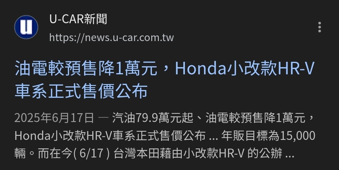 → hsiung9: HRV一年要賣15000 一個月是1250 改款蜜月期只賣一半 07/01 19:02