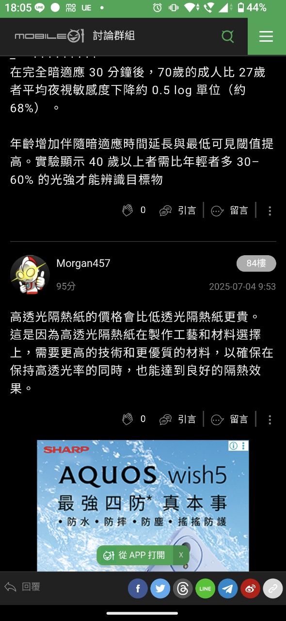 → yurian: 是“高透光又高隔熱的紙”很貴 你似乎跟隔熱紙很不熟? 07/05 18:03