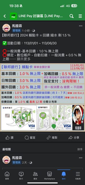 → HuaLan : 樓上,還有正宗的Line Pay聯名卡,只是維持1%很久了 12/18 03:09