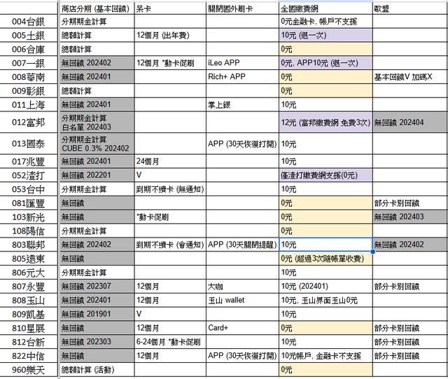2. 今年開始有很多銀行要開始清呆卡,今年被台中銀直接不續卡(沒找到通知)、