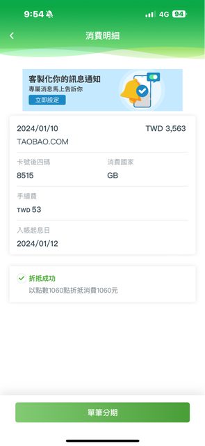 → Sheng98 : 點數換成刷卡金退刷這樣吧, 消費 3563, 商品有問題 01/19 22:12