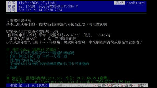 : ※ 文章網址: https://www.ptt-web.org.tw/creditcard/M.1705818572.A.159