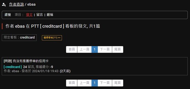 反觀 作者 ebaa 在 PTT [ creditcard ] 看板的發文、留言(推文)