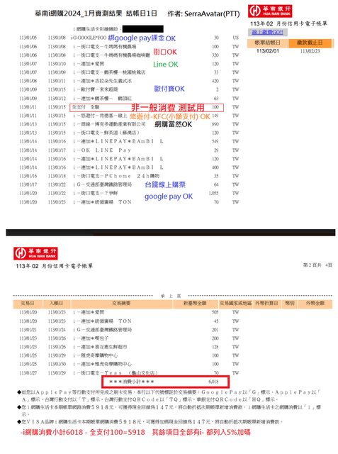 → gxjason : 收到113/1帳單確認華南i網購綁定open錢包 *費 沒有 02/07 11:15