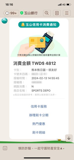 推 rail02000 : 回覆36樓b19大,刷卡通知無論刷卡幣值或請款貨幣, 02/14 18:07