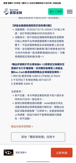 推 ruby02162000: 1/2申請、2/5核卡、過年前收到卡並刷滿5000,2/26剛02/26 16:32