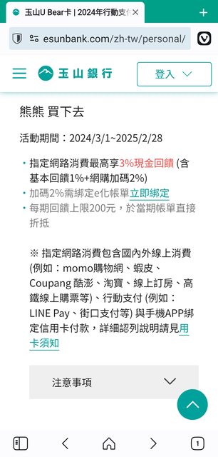 推 Kazamatsuri : 玉山Ubear是3% 華南i網購/SnY才是5% 02/29 23:29