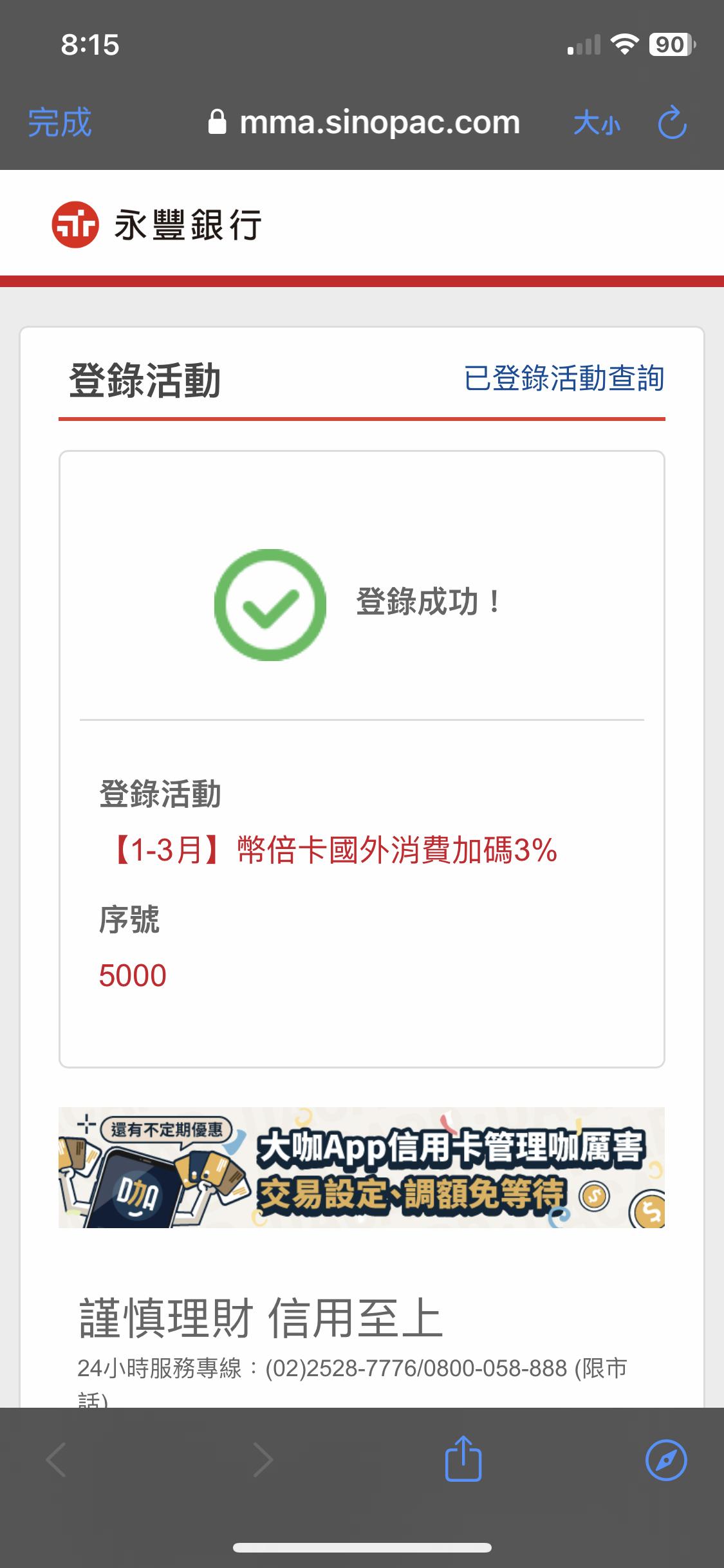 → kkkk1234 : 原本沒打算登 後來想到附卡可能會有海外實體消費就 03/01 20:27