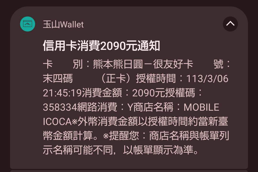 wattswatts : 玉山熊本熊卡儲值日本交通卡通路回饋沒有綁定特定 03/06 19:40