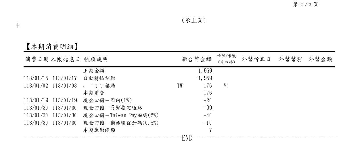 → shinymoke : 以我這份帳單:1/31~2/26的消費,會回饋在下一期, 03/09 00:40