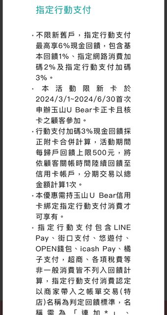 推 chang505 : 新辦卡就有但有玉山卡很難沒有U熊卡 03/07 10:20