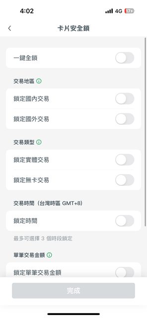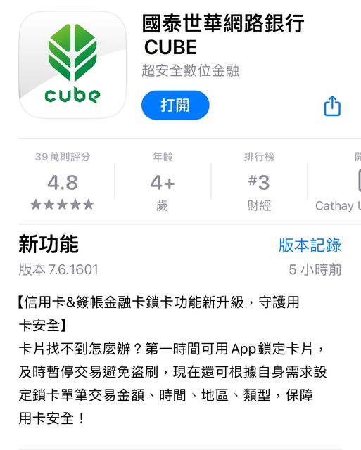 剛剛在App Store 看到國泰App更新了 這次更新可以單獨選擇「國內消費」或是「海外消費」鎖卡(之前只能全部鎖) 不僅如此,還能針對「特定時段」或是「特定金額」做設定(目前看到只有國泰有這個,其 他家不確定) 關心用卡安全的版友們趕快更新吧! https://i.imgur.com/T6096wd.jpg
