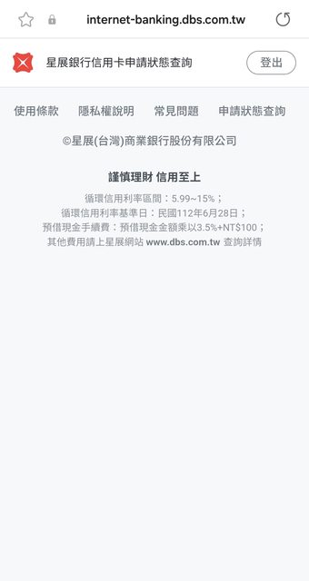 3/16送件申請後 到目前為止用星展的網站要查詢進度都是像圖片這樣沒有顯示任何資訊 試過各種瀏覽器查詢都一樣,請問申辦過星展的大家有遇過這個情形嗎? https://i.imgur.com/IFeAX2G.jpg