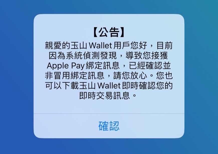 今早08:41收到玉山信用卡訊息 「 您的玉山卡(末4碼OOOO)已完成Apple Pay綁定,請慎防詐騙,若非本人綁卡請盡快與本行客 服確認。 謹慎理財信用無價,循環利率5.88-15% 玉山銀行信用卡暨支付金融處 敬啟 」 8:50看到的時候致電給玉山信用卡客服 電話02-21821313 撥了好幾通電話都撥不通 有人也是相同情況嗎? -- ※ 發信站: 批踢踢實業坊(www.ptt-web.org.tw), 來自: 218.172.43.206 (臺灣) ※ 文章網址: https://www.ptt-web.org.tw/creditcard/M.1712279041.A.192