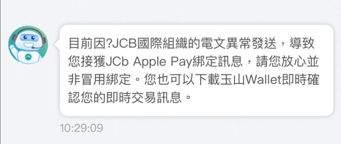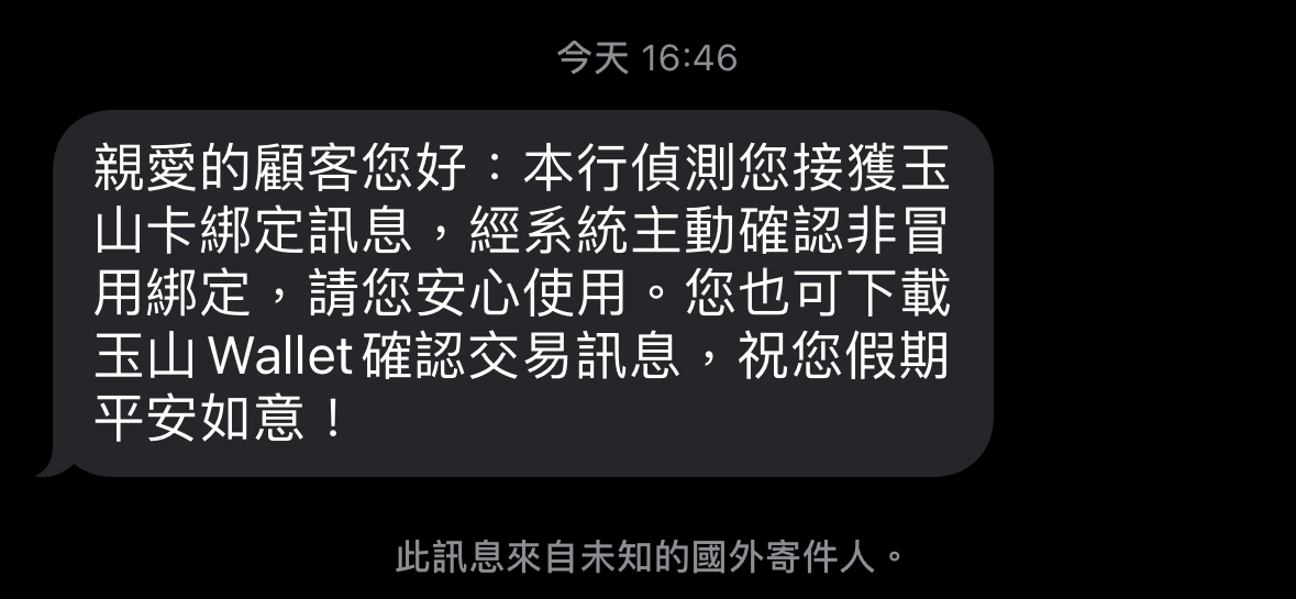 KousakaReina: 玉山兩張JCB都有收到ㄏ,年初我收過一樣的簡訊 當 04/05 11:18