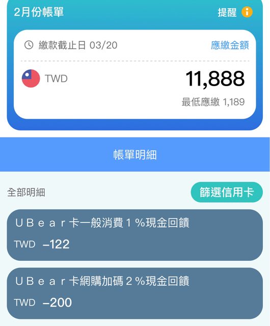→ liangxiong : 算!所以多的112是3/9消費的5600的2%沒錯04/06 07:41