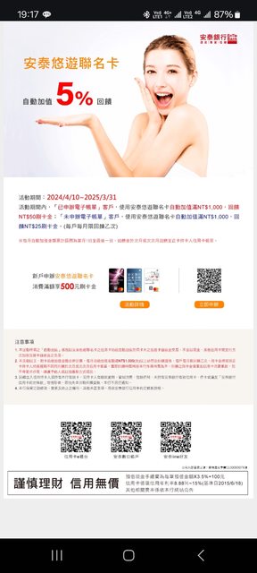 標題[情報] 2024安泰悠遊卡自動加值5%