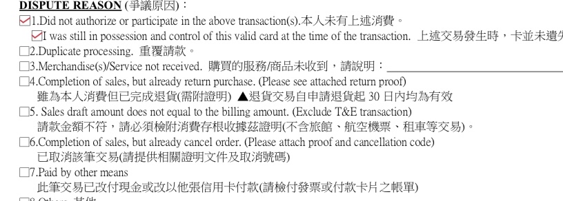 → TaiwanDPP : 看看那個項目跟你的狀況有符合的 就跟銀行提出爭議04/16 14:54