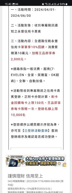 推 maxcockroach: 我的簡訊沒有任何指定,只說永豐卡消費,而我也只 04/20 12:06