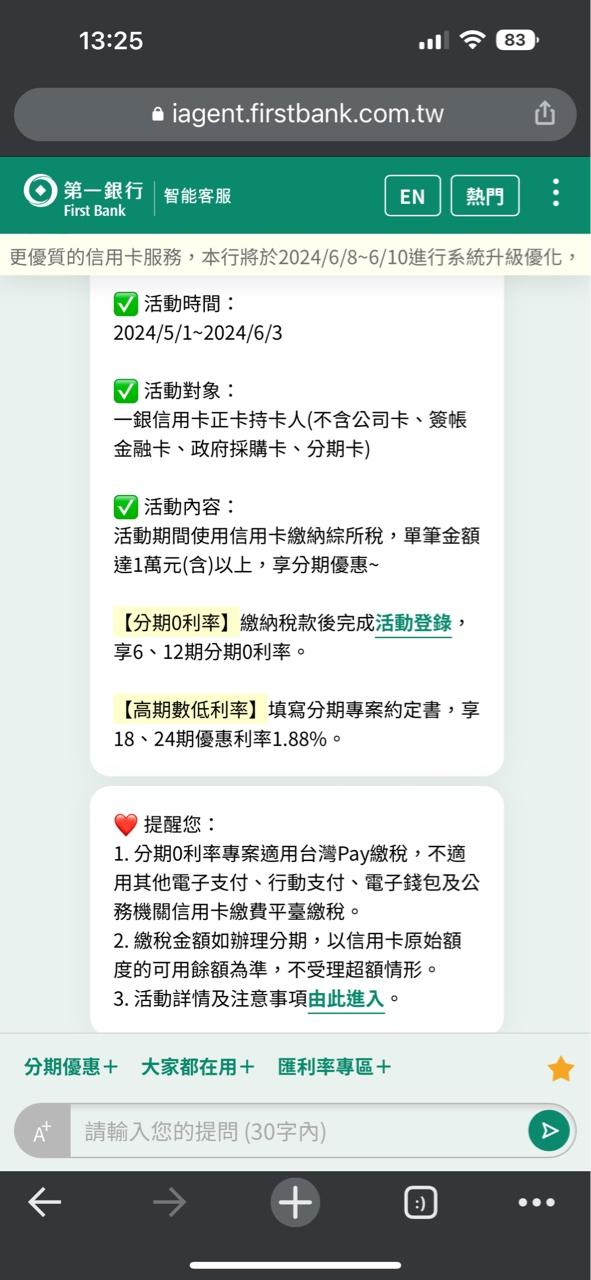 推 a0356482 : 一銀分期跟台灣pay刷卡金不知能不能同時 04/27 23:27