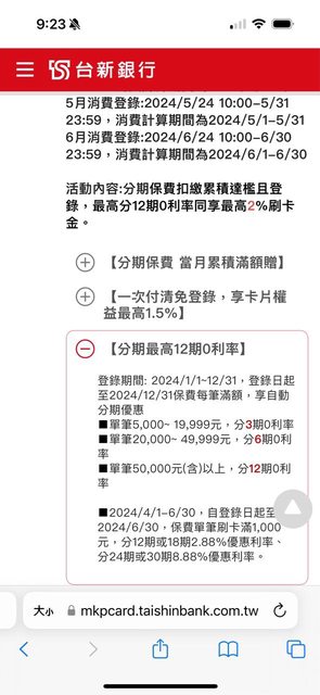 → Kazamatsuri : 期0利率 4-6月特別增加單筆1000以上分期有利率這樣 05/02 23:01