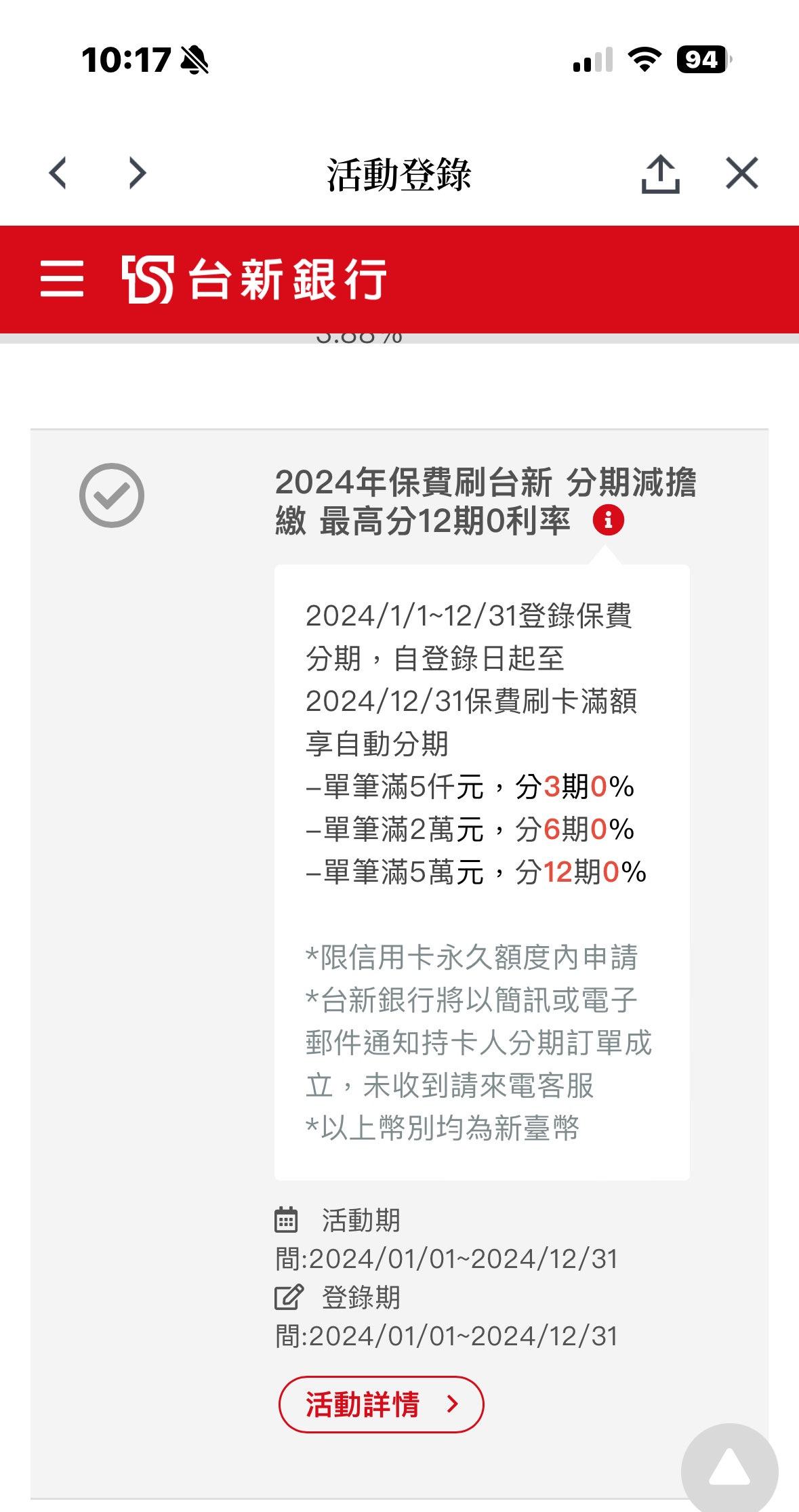 推 Rita004 : 保費刷台新我都是登這個 05/03 10:19