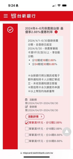 → florencefrog: 但是登陸頁面我找不到K大說的選項,只有分期零利率 05/04 01:11