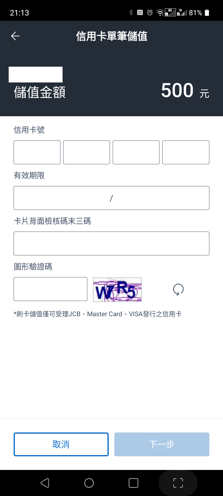 → pilijinyan : 剛用網頁介面儲值100看起來沒有跳到台銀系統耶(?) 05/13 18:44