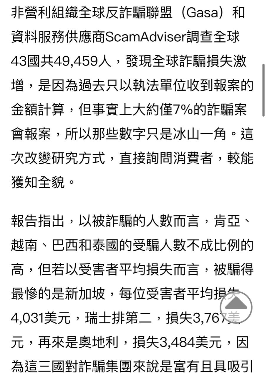 → charles0939 : 新加坡位居全球詐騙案中最多損失高達1.4 兆美元 05/14 07:39