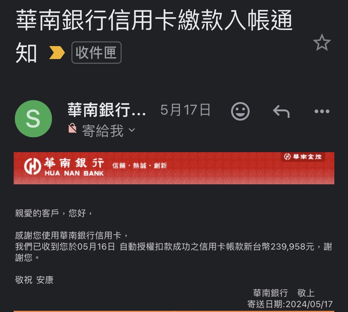 → charles0939 : 原來已設定自動扣繳 05/18 08:05