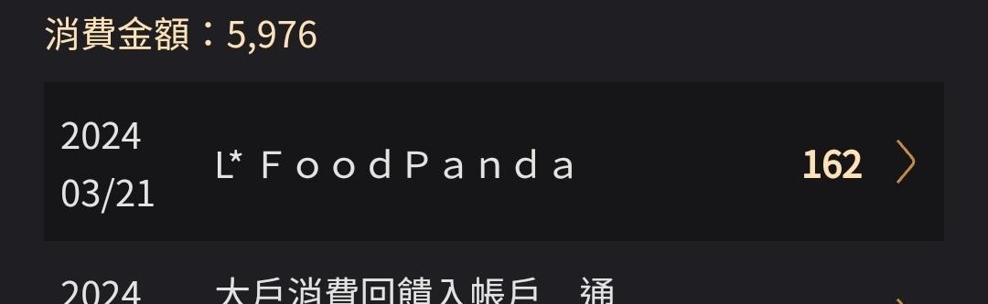 → finhisky : 台中銀帳單顯示 直接綁熊貓是foodpanda-EC (CtV) 透 05/21 00:06