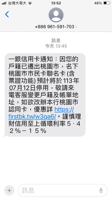 → bemaz : 原po貼圖簡訊裡面就是提醒 市民卡被停用,可以改申 06/02 06:59