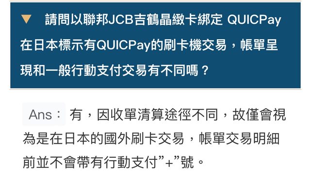 → willieliu : 你認為要有+才算 但FAQ就告訴你QuicPay不會有 06/30 02:03