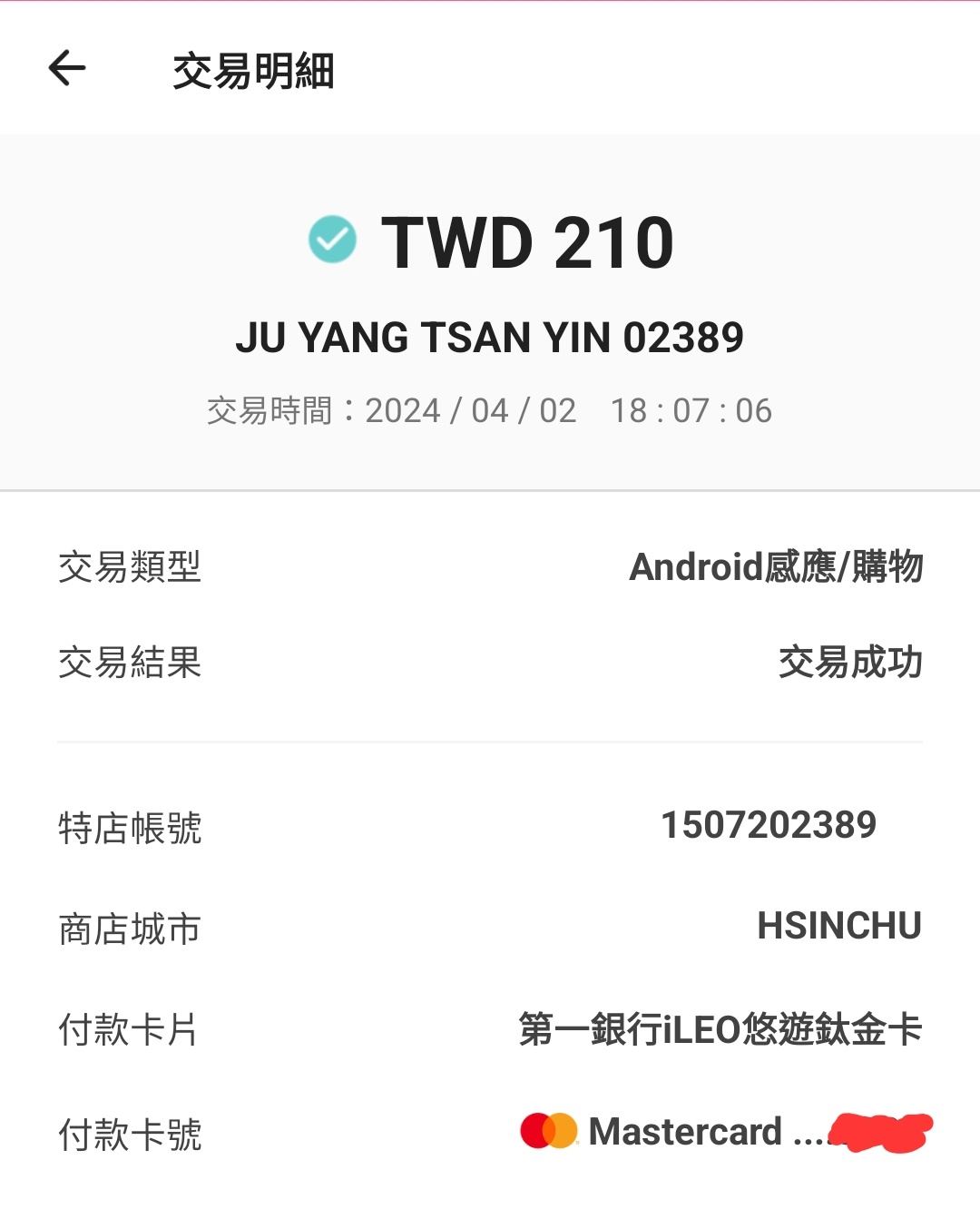 → Kazamatsuri : 目前只能用帳戶/金融卡不能用信用卡 只有台新Pay掃 07/16 19:54