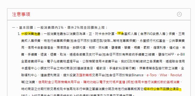 : 推 pc1234 : 簡單講就是沒特別條列排除或加碼的消費類別都算一般 07/14 20:58