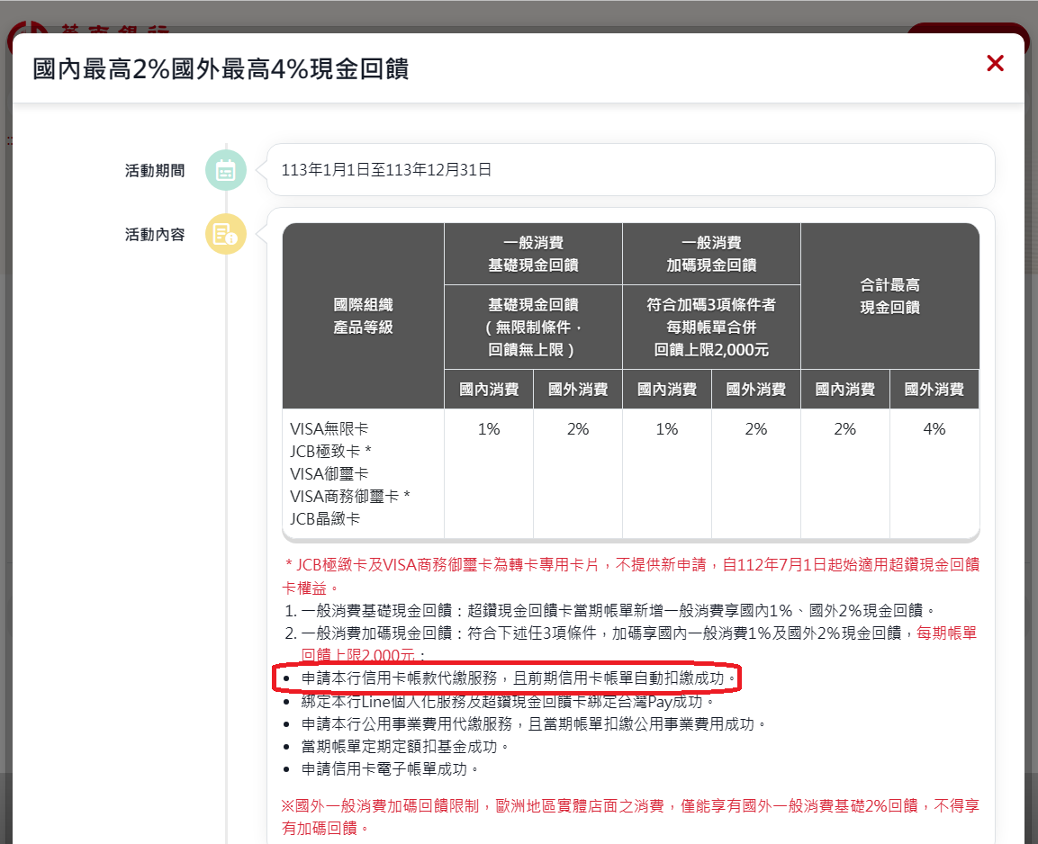 → Kazamatsuri : 自扣的外幣帳戶+1%無上限自動回刷卡金入帳單囉~ 07/21 10:44