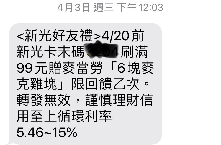 → rxkonami : 好像沒收到過新光活動簡訊 08/02 23:20