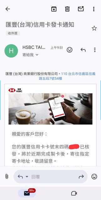 推 my1938 : 匯豐的特色就是用平信寄卡(誤 08/04 05:58