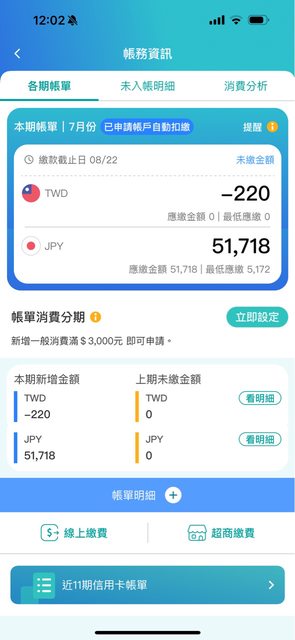 → gottsuan : 額不足會自動由台幣帳戶換匯成日幣扣款 台幣帳戶也08/08 12:15