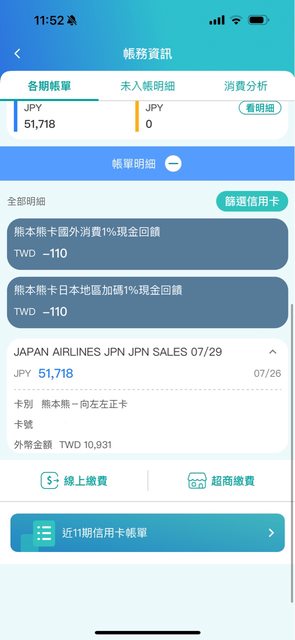 → moonlitwind : 收到帳單的時候很好對帳。這次出國雙幣卡+paypay交 08/10 16:22