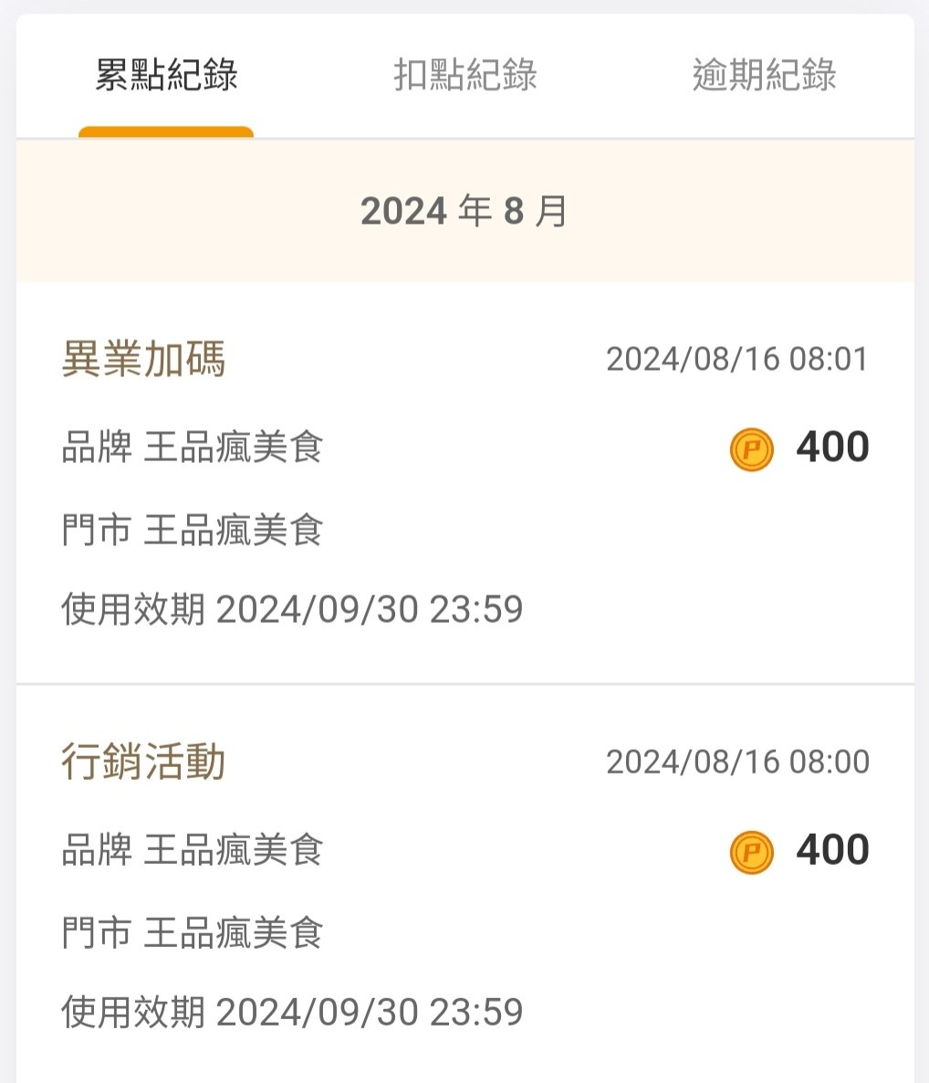 推 TZUYIC : 瘋點數是帳戶所有點數合計使用,先進先出,分兩筆回 08/16 19:18