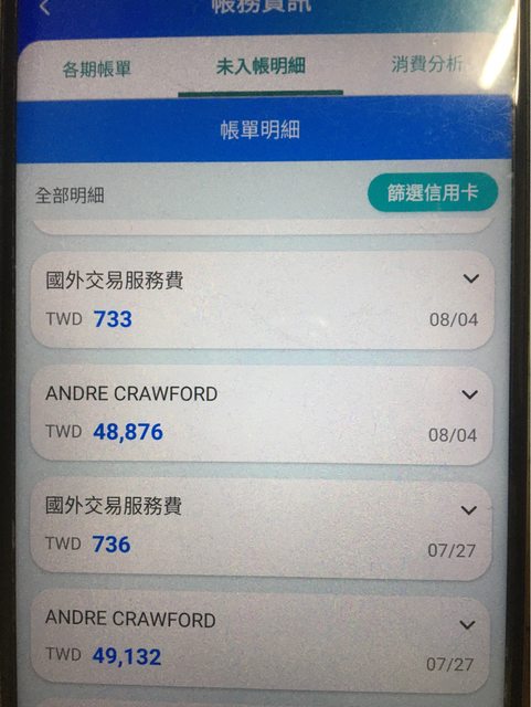 → badfood : 總之請原po先上網路銀行看一下帳單或未出帳明細08/17 13:30