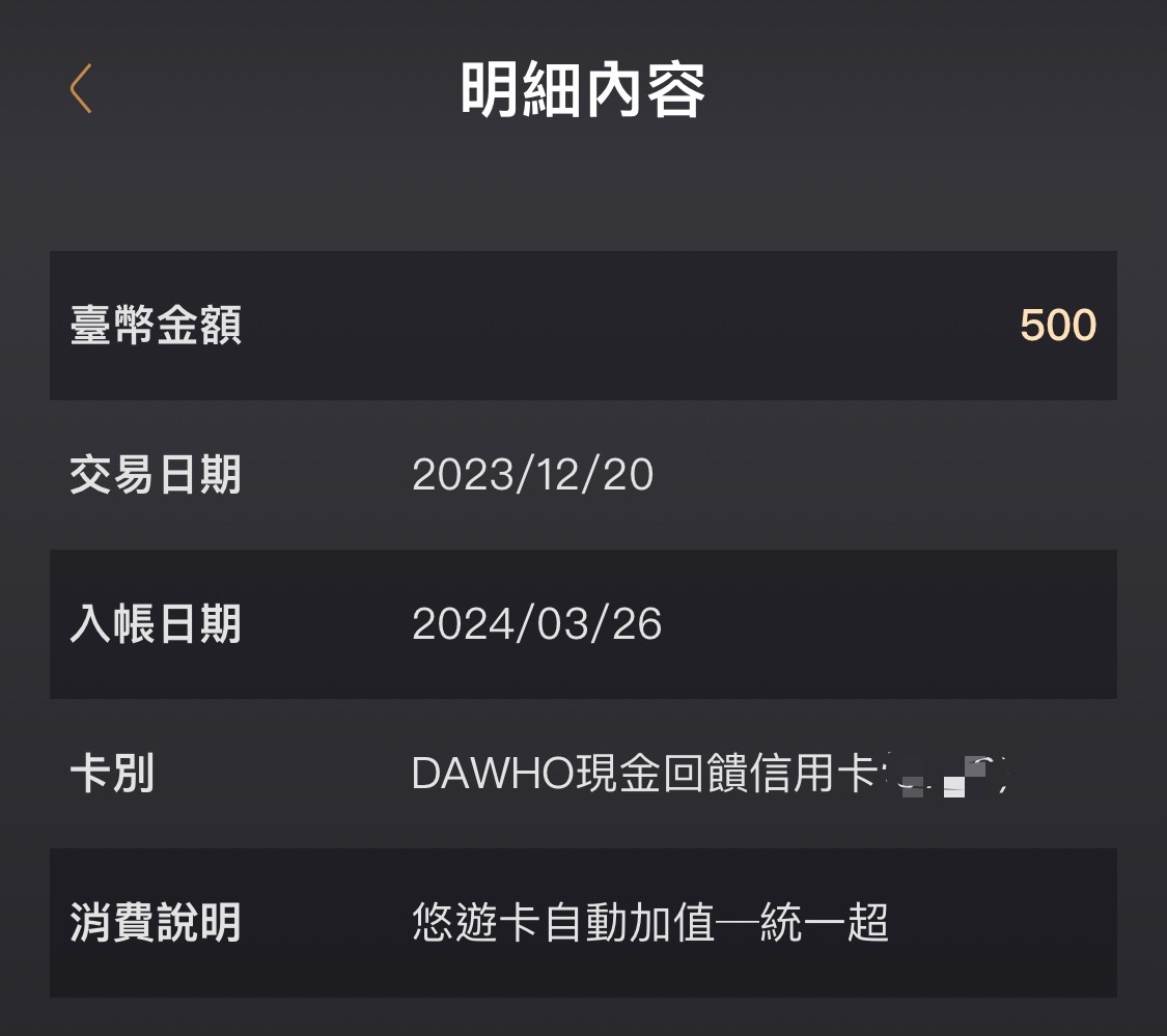 → luther0583 : 自動加值的消費比一般消費的入帳日還要不穩定,如果 08/21 12:31