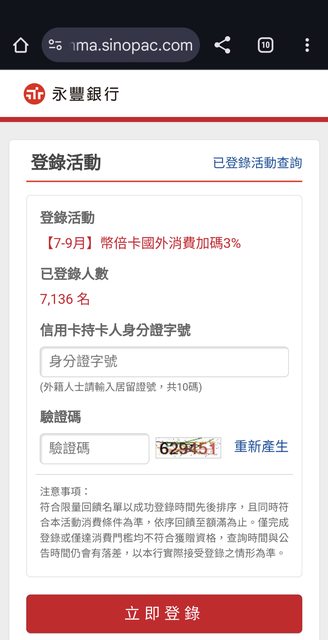 → talunhsu : 請問登錄成功是寫 第三季(2024)海外實體商店消費加 09/09 20:32