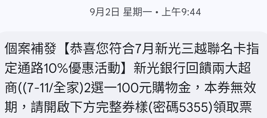 推 pl726 : 今天上午請客服確認 下午收到補發簡訊 效率不錯 09/18 19:26