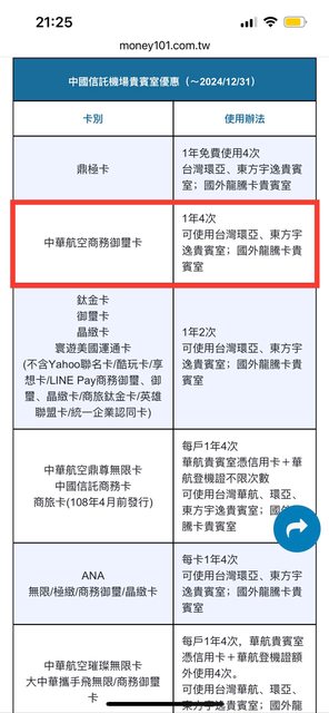 → AGM304 : 想問使用貴賓室,官網上除了刷卡門檻外,注意事項 09/27 10:54