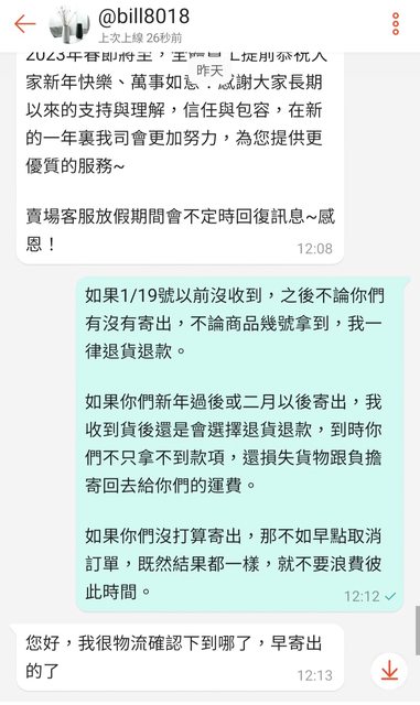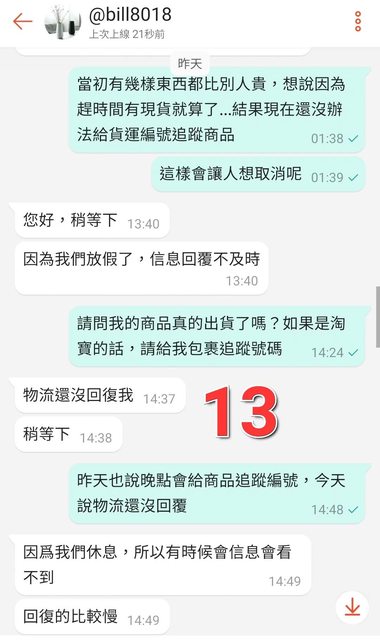 推 willow: 之前也是遇到中國賣家騙出貨時間,後來真 101.12.47.62 01/18 13:59