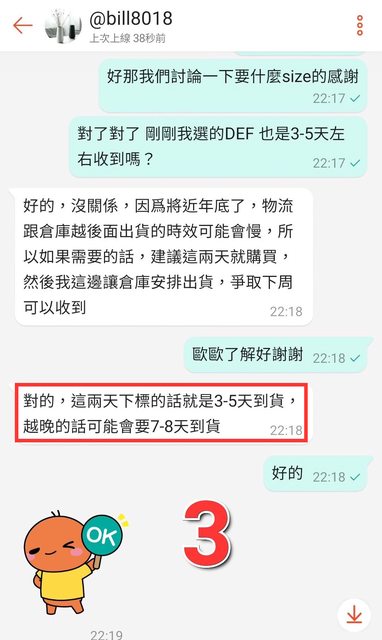 → sunjanet: 3到5天,後來拖了7天才出貨,若要急用 180.217.14.1 01/18 08:47