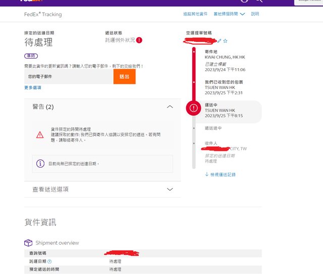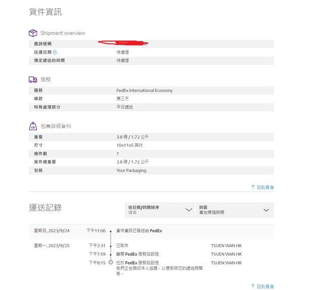 推 nexcaree: 你用提單號查詢打電話去fedex問看到底 36.225.4.176 09/26 02:11