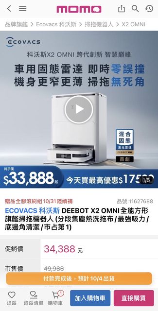→ Joseph619: 有在考慮吸拖吸塵器跟洗地機106.105.165.201 10/05 09:28